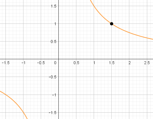 На графике видно, что гипербола \(\displaystyle \rm IV\) проходит через точку с координатами \(\displaystyle (1{,}5;\, 1){\small : }\)