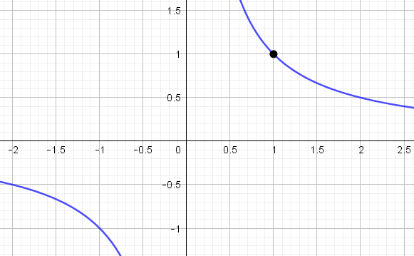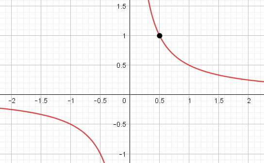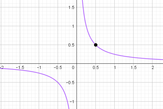 На графике видно, что гипербола \(\displaystyle \rm I\) проходит через точку с координатами \(\displaystyle (0{,}5;\, 0{,}5){\small : }\)