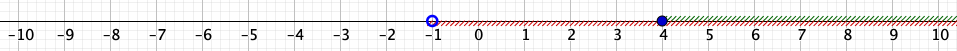 \(\displaystyle \left\{ \begin{aligned} \color{green}{x}& \color{green}{\ge 4}{\small , }\\\color{red}{x}&\color{red}{> -1}{\small . } \end{aligned} \right. \)
