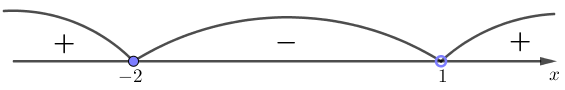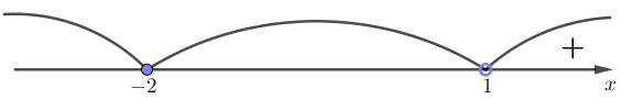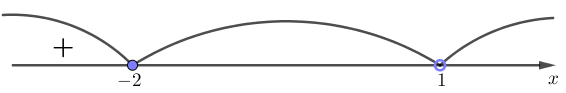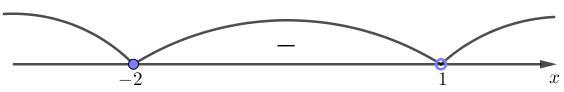 Следовательно, на интервале \(\displaystyle (-2;1) \) функция отрицательна и пишем знак \(\displaystyle -{\small : }\)