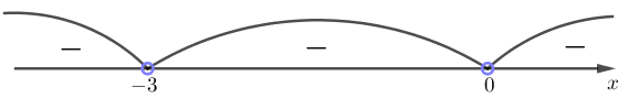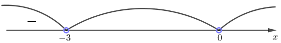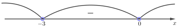 Следовательно, на интервале \(\displaystyle (-3;0) \) функция отрицательна и мы пишем знак \(\displaystyle -{\small : }\)