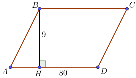 \(\displaystyle {S_{пар}} = {AD}\cdot BH = {80}\cdot 9 = 720 {\small.}\)