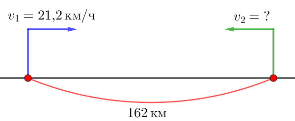 \(\displaystyle v_2=v_{сближения}-v_1=40{,}5-21{,}2=19{,}3\) км/ч.