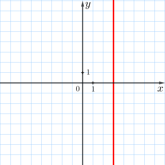Графиком уравнения является вертикальная прямая, которая пересекает ось \(\displaystyle \rm OX\) в точке \(\displaystyle (3;0) {\small.}\)