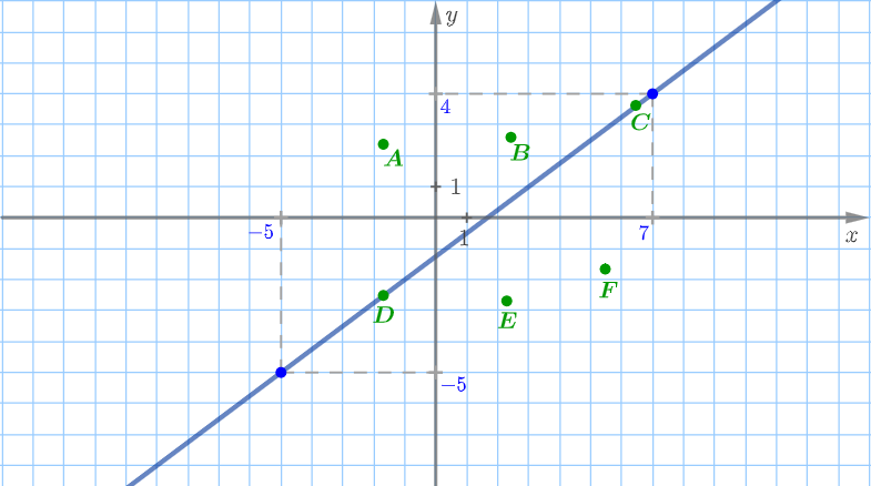 Построим точки \(\displaystyle (-5;-5)\) и \(\displaystyle (7;4){\small.}\)