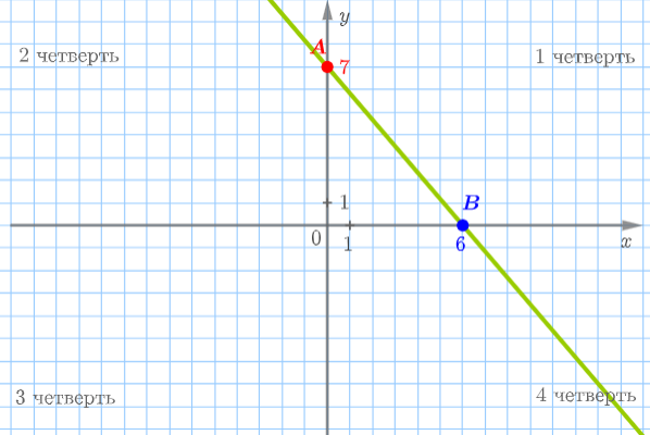 | Ответ: | \(\displaystyle A(0\ ;\ 7){\small,}\) \(\displaystyle B(6\ ;\ 0 ){\small.}\) |