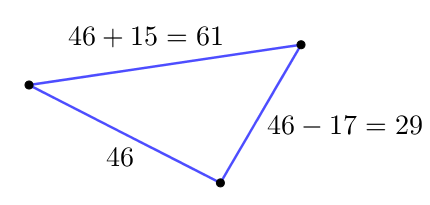 • вторая сторона равна \(\displaystyle 46-17=29\) мм,