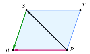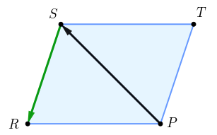 \(\displaystyle \overrightarrow {PS}-\overrightarrow {RS}=\overrightarrow {PS}+\color{#009900}{\overrightarrow {SR}}.\)