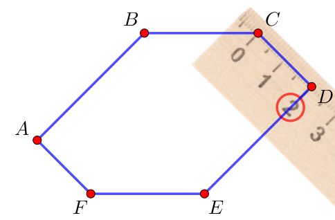 С помощью сантиметровой линейки найдите периметр шестиугольника \(\displaystyle ABCDEF\small.\)