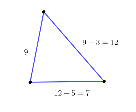 - третья сторона равна \(\displaystyle 12-5=7\) см.