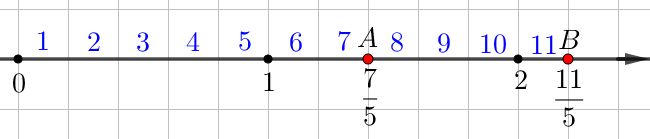 Разделим единичный отрезок на \(\displaystyle 5\) равных частей. Получим, что одна такая часть равна \(\displaystyle 1\) клетке.