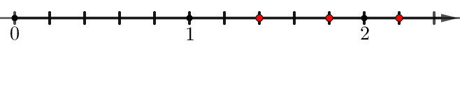 Первая точка лежит между \(\displaystyle 1\) и \(\displaystyle 2\small.\) Значит, целая часть равна \(\displaystyle 1\small.\)