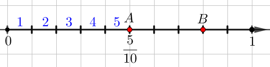координата точки \(\displaystyle A=\frac{1}{2}=\frac{5}{10}\small,\)