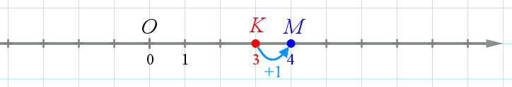 Точка \(\displaystyle M\) получена перемещением точки \(\displaystyle K\) на \(\displaystyle 1\small.\) Найдите координату точки \(\displaystyle M\small.\)