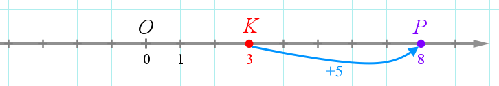 Точка \(\displaystyle P\) получена перемещением точки \(\displaystyle K\) на \(\displaystyle 5\small.\) Найдите координату точки \(\displaystyle P\small.\)