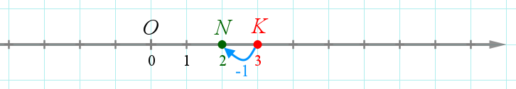 Точка \(\displaystyle N\) получена перемещением точки \(\displaystyle K\) на \(\displaystyle -1\small.\) Найдите координату точки \(\displaystyle N\small.\)
