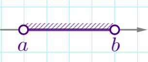 | \(\displaystyle a<x<b\) | ![]() | \(\displaystyle (a;b)\) | интервал |