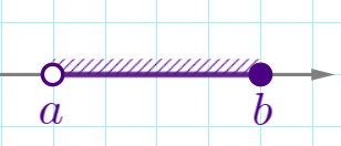 | \(\displaystyle a < x \leq b\) | ![]() | \(\displaystyle (a;b]\) | полуинтервал |