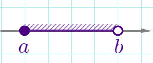 | \(\displaystyle a \leq x < b\) | ![]() | \(\displaystyle [a;b)\) | полуинтервал |