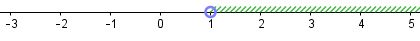 Это означает, что мы должны выбрать на координатной прямой все значения \(\displaystyle x{\small , } \) которые больше \(\displaystyle 1\) и не включают \(\displaystyle 1{\small . } \)