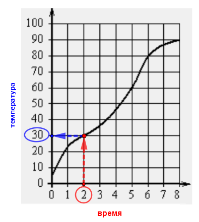 То есть в ответе нужно указать то значение на оси ординат, которое соответствует значению \(\displaystyle 2\) на оси абсцисс.