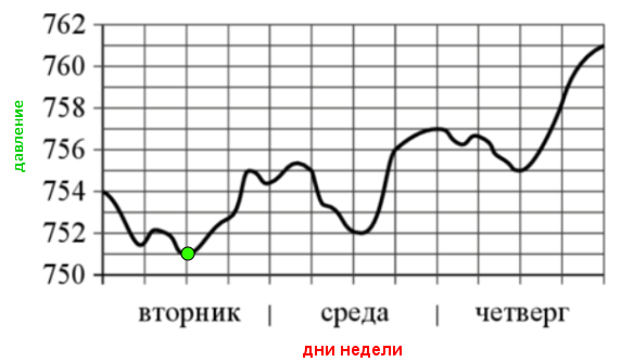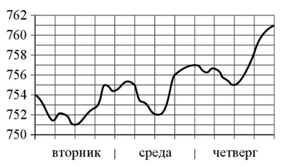Таким образом, наименьшее значение атмосферного давления за три дня – \(\displaystyle 751\) мм рт. ст.