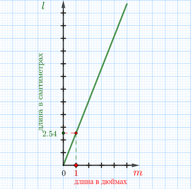 По графику видим, что одному дюйму соответствует \(\displaystyle 2{,}54\)см.