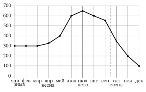 На рисунке точками показаны объёмы месячных продаж холодильников в магазине бытовой техники. По горизонтали указываются месяцы, по вертикали – количество проданных холодильников. Для наглядности точки соединены линией.