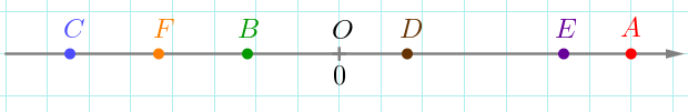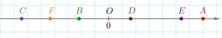 На рисунке правее нуля лежат точки \(\displaystyle A {\small,}\) \(\displaystyle D {\small,}\) \(\displaystyle E{\small.}\)