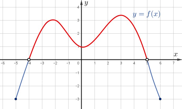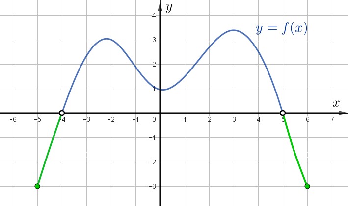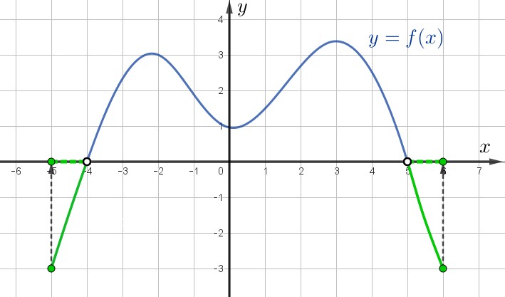 | \(\displaystyle f(x)<0\) | при \(\displaystyle x \in [-5;\,-4 ) ; (5;\,6] {\small.}\) |