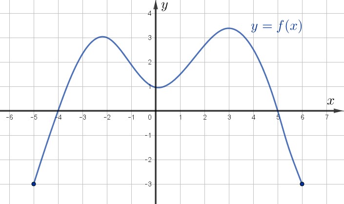Функция \(\displaystyle y=f(x)\) задана на отрезке \(\displaystyle [-5;\,6]\) с помощью графика: