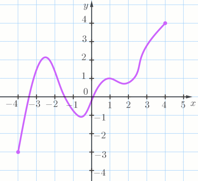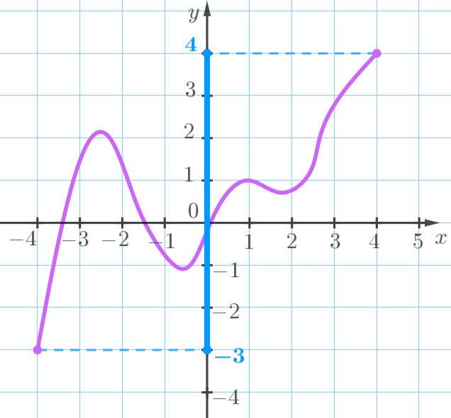 Значит, множеством значений функции \(\displaystyle y=f(x){\small,}\) заданной этим графиком, является отрезок \(\displaystyle [-3;4]{\small.}\)