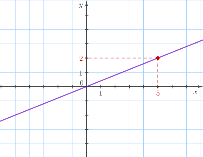 Зададим формулой прямую пропорциональность, график которой проходит через точку \(\displaystyle (\color{red}{5};\color{red}{2}){\small.}\)