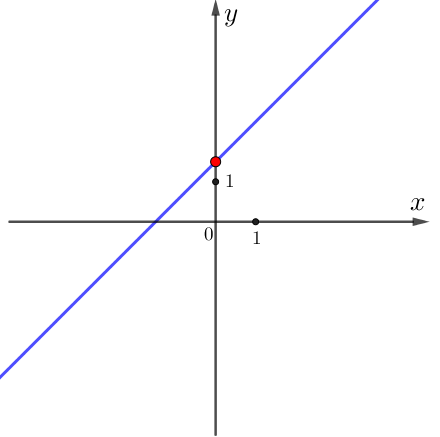 Поскольку точка пересечения находится выше оси \(\displaystyle Ox{\small , }\) её ордината \(\displaystyle {b}\) положительна.