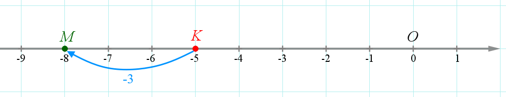 Если к числу \(\displaystyle m\) прибавить отрицательное число \(\displaystyle -n\small,\) то точка с координатой \(\displaystyle m\) переместится на координатной прямой на \(\displaystyle n\) единиц влево.