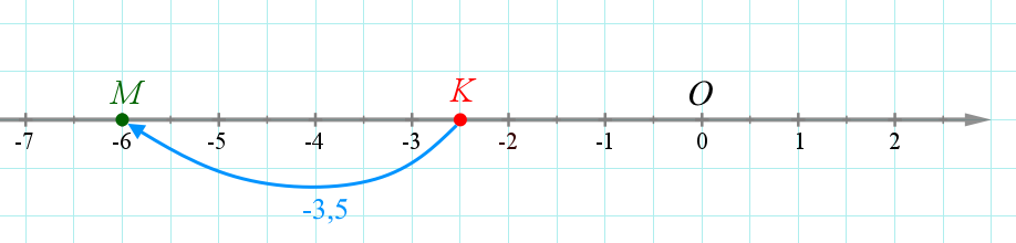 Если к числу \(\displaystyle m\) прибавить число \(\displaystyle n\small,\) то точка с координатой \(\displaystyle m\) переместится на координатной прямой на \(\displaystyle |n|\) единиц: вправо – если число \(\displaystyle n\) положительное, либо влево – если число \(\displaystyle n\) отрицательное.