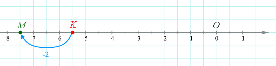 Если к числу \(\displaystyle m\) прибавить отрицательное число \(\displaystyle -n\small,\) то точка с координатой \(\displaystyle m\) переместится на координатной прямой на \(\displaystyle n\) единиц влево.