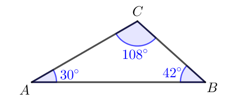 Получаем, что углы треугольника равны \(\displaystyle 30^{\circ},\,42^{\circ}\) и \(\displaystyle 108^{\circ}{\small:}\)