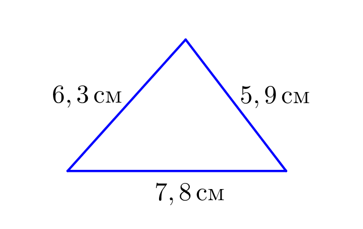 \(\displaystyle \color{red}P_{треугольника}=7{,}8+5{,}9+6{,}3=20\)см.