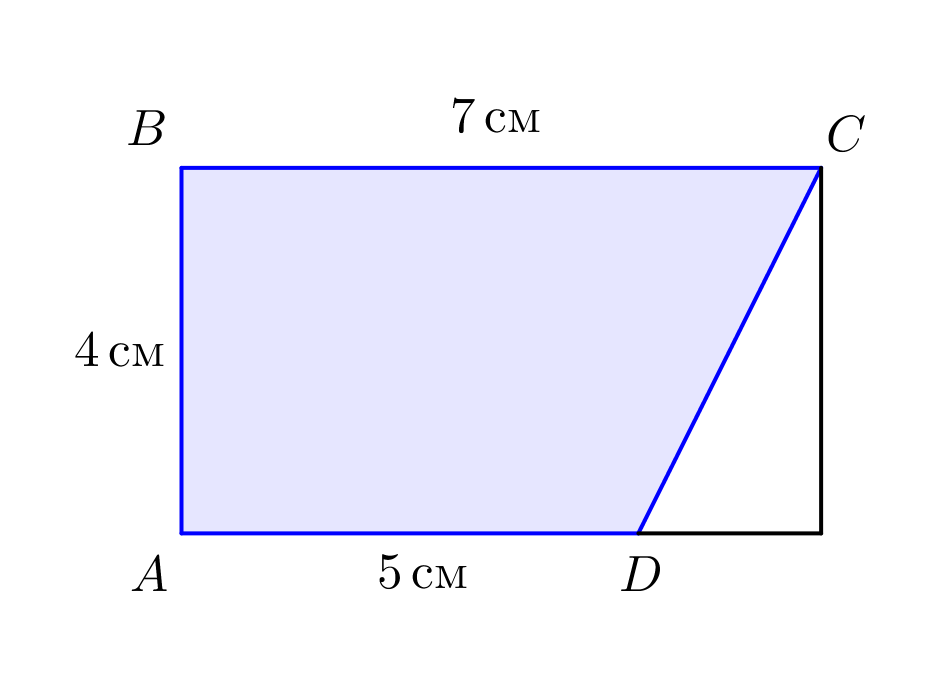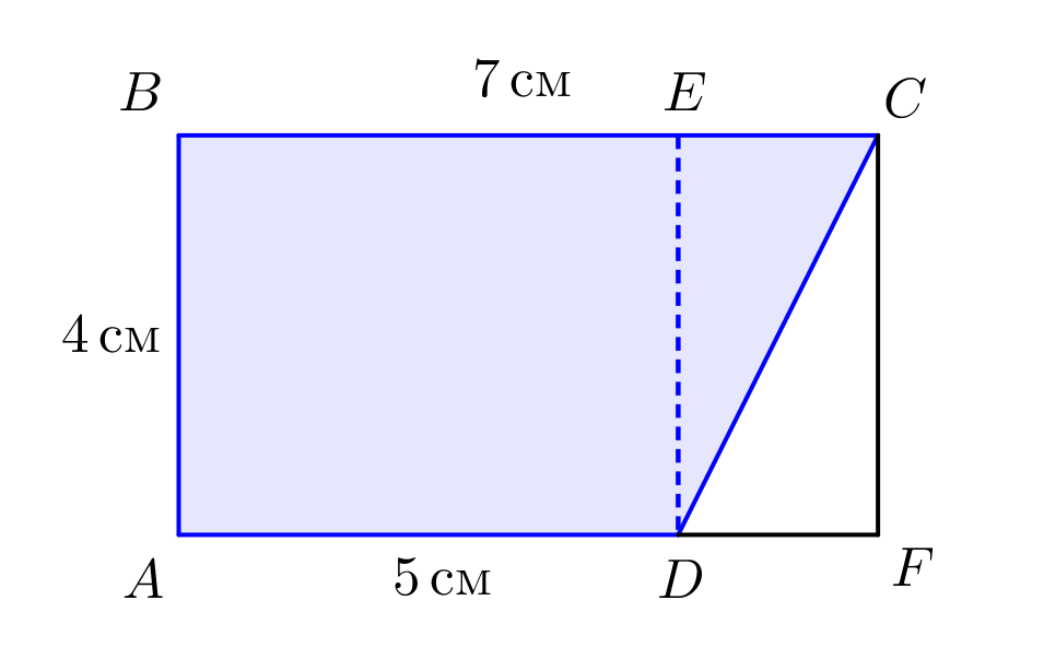 Площадь фигуры \(\displaystyle ABCD\) равна сумме площадей прямоугольника \(\displaystyle ABED\) и треугольника \(\displaystyle ECD\small.\)