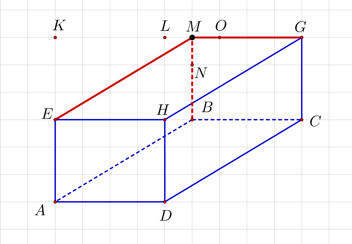 Три новых ребра пересекаются в точке \(\displaystyle M\small.\) Значит, точка \(\displaystyle M\) является недостающей вершиной прямоугольного параллелепипеда.