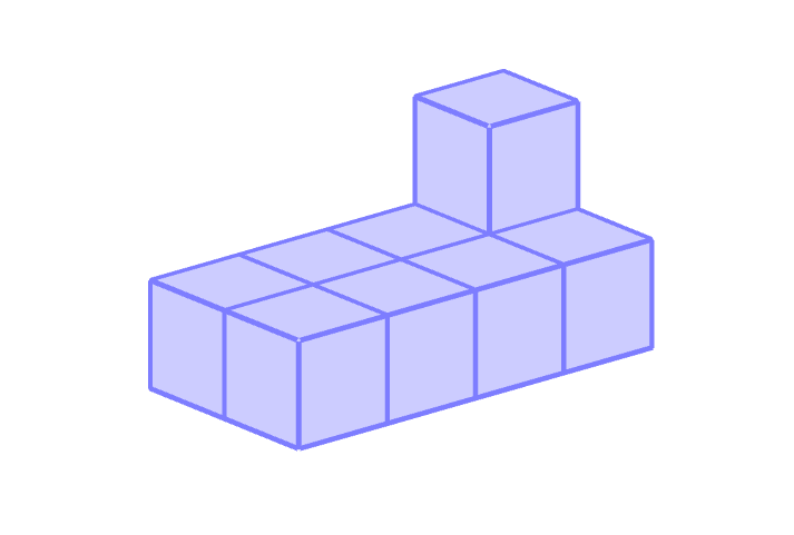 Чтобы вычислить объём фигуры, посчитаем количество кубиков, из которых она состоит.