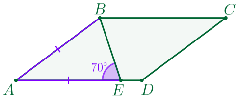 На стороне \(\displaystyle AD\) параллелограмма \(\displaystyle ABCD\) отмечена точка \(\displaystyle E\) так, что \(\displaystyle AB=AE{\small,}\) \(\displaystyle \angle BEA=70^{\circ}{\small.}\)