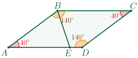 То есть угол \(\displaystyle A\) параллелограмма \(\displaystyle ABCD\) равен \(\displaystyle 40^{\circ}{\small.}\)