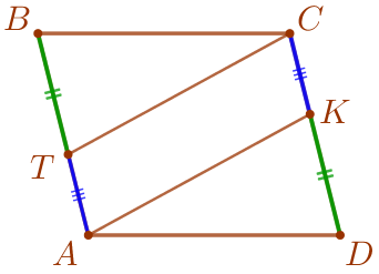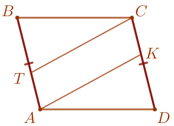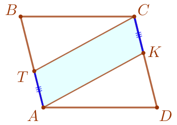 На сторонах \(\displaystyle AB\) и \(\displaystyle CD\) параллелограмма \(\displaystyle ABCD\) отмечены соответственно точки \(\displaystyle T\) и \(\displaystyle K\) так, что \(\displaystyle BT=DK{\small.}\)