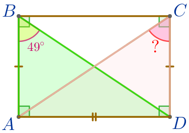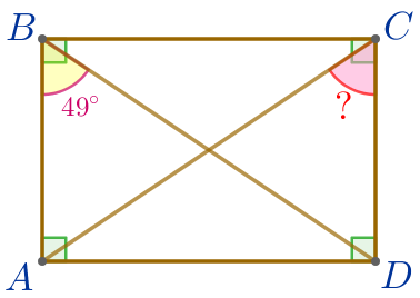 \(\displaystyle ABCD\) – прямоугольник. \(\displaystyle \angle ABD=49^{\circ}{\small.}\)