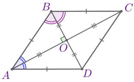 | Диагонали ромба являются биссектрисами его углов. | ![]() |