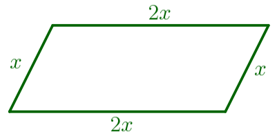 Пусть \(\displaystyle x\, {\footnotesize см}\) – меньшая сторона параллелограмма. Тогда \(\displaystyle 2x\, {\footnotesize см}\) – большая сторона параллелограмма. | ![]() |