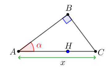 Обозначим длину отрезка \(\displaystyle AC\) за \(\displaystyle x\) и выразим длины отрезков \(\displaystyle AH\) и \(\displaystyle CH\) через \(\displaystyle x\small.\)