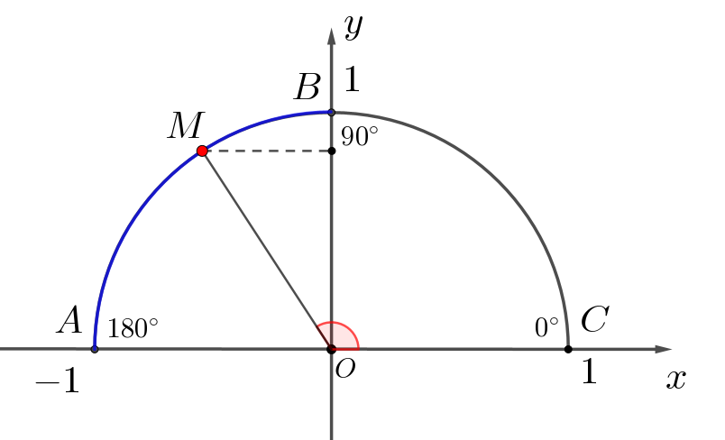 Угол \(\displaystyle 123^{\circ}\) тупой: больше \(\displaystyle 90^{\circ}\) и меньше \(\displaystyle 180^{\circ}\small.\) Тогда соответствующая точка \(\displaystyle M\) лежит на дуге \(\displaystyle AB{\small:}\)
